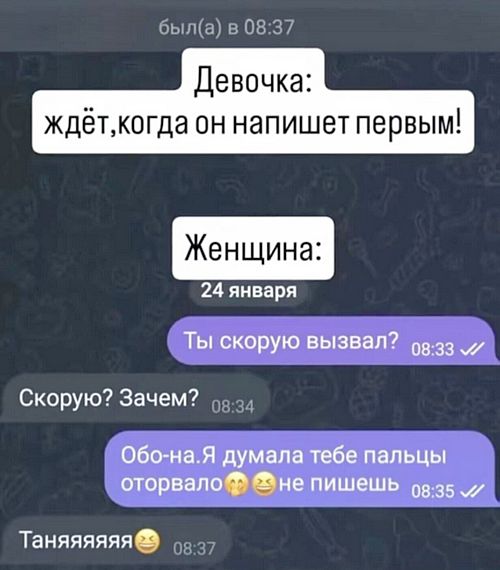 - На открытке написал, что ждал меня всю жизнь. Намекает, что я опоздала на свидание или что я очень старая.